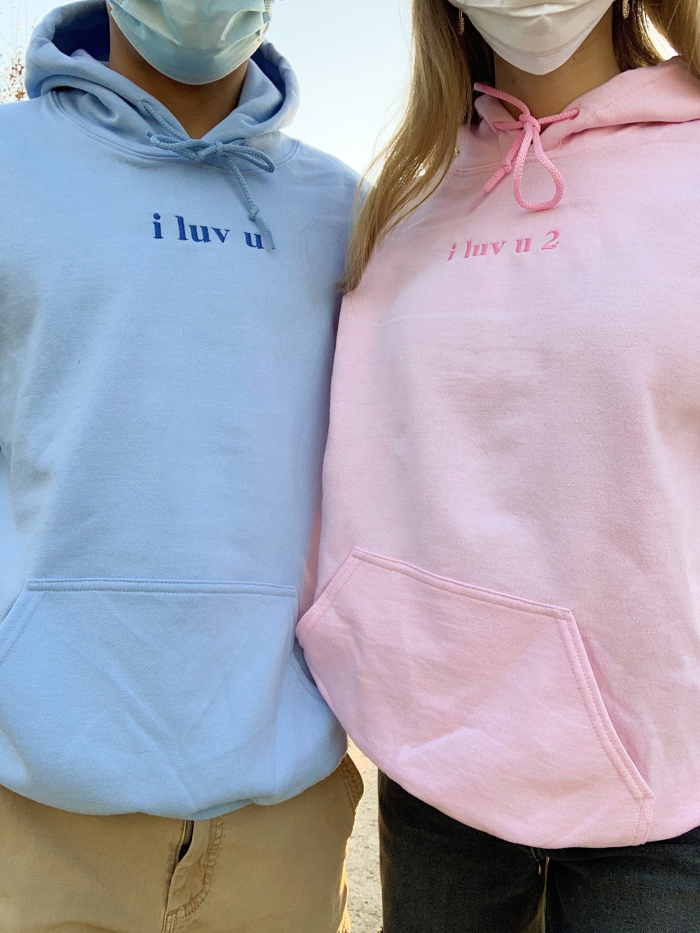 Pink And Blue Matching I Luv U Hoodies Etsy Uk